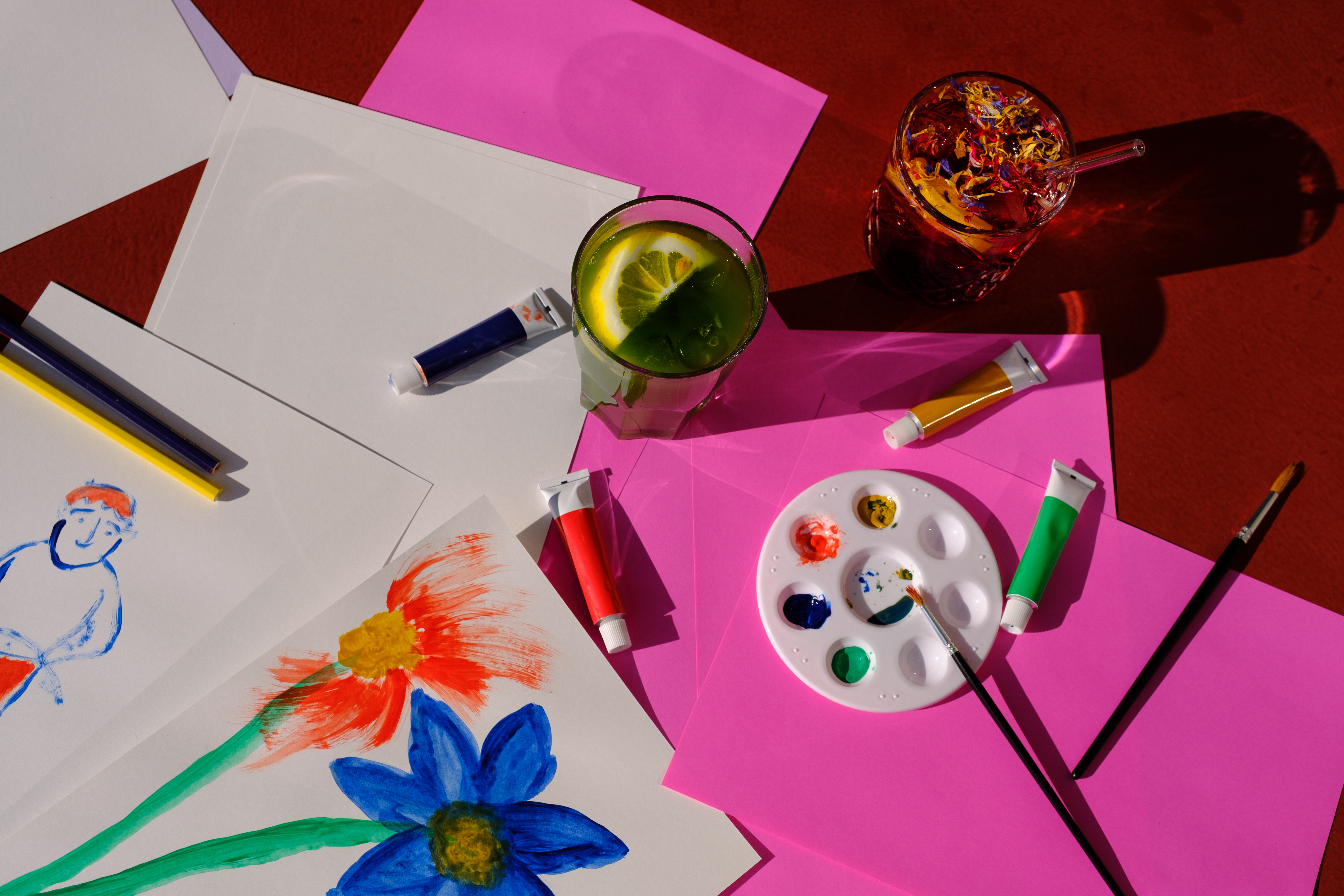 Kreativ zum Apéro lädt dazu ein, den Abend mit einer Portion Kreativität und Entspannung einzuläuten. Die Teilnehmenden können ihrer Fantasie freien Lauf lassen und auf verschiedenen Materialien malen. Getränke können an der Sommerbar gekauft oder selbst mitgebracht werden.